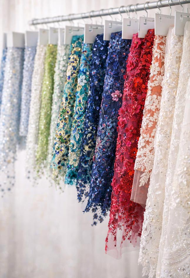 We develop lace and embroidery materials based on how they will be used in garments — not just how they look.